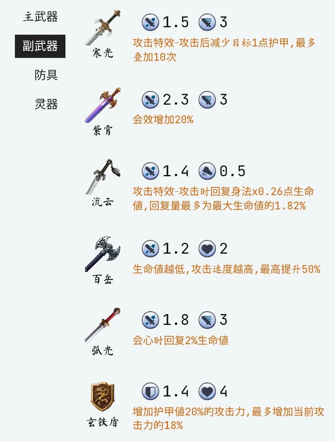 噬魂刀 百岳 无侵甲 辉光 逐风 灵风