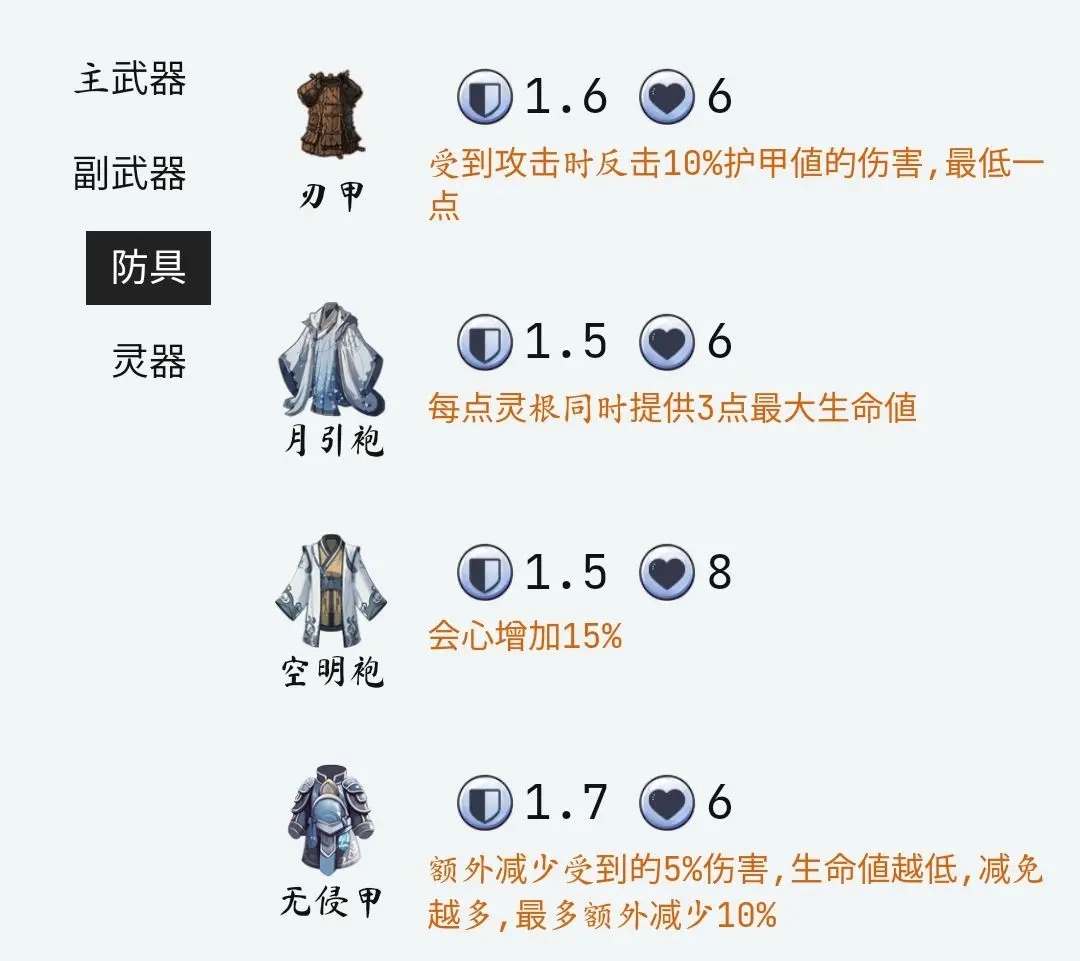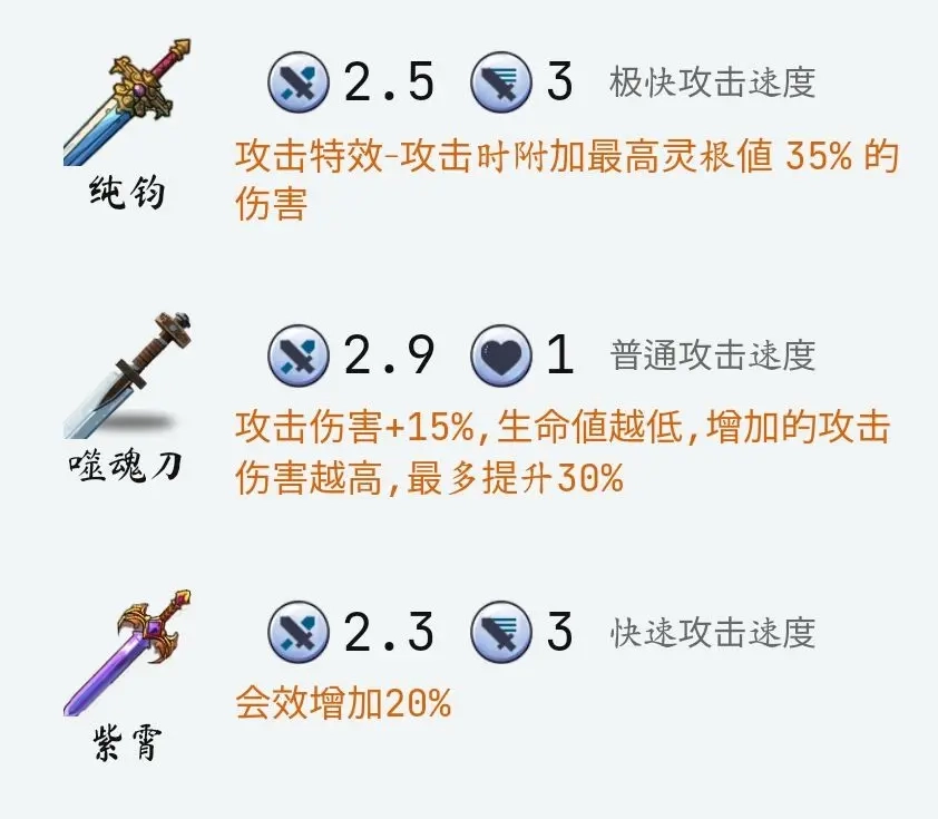 初期选绝品装备时,噬魂刀(伤害加15%,生命值越低加成越高,最高能到30%)或者百岳(生命值越低攻速越快,最高50%)是比较推荐的;要是有月引袍(每点灵根加5点生命,前期总共能加75点,这加成可不少),也可以选明象(攻速提升30%,伤害降低5%)。 之所以这么选,是因为那些基于身法、臂力、护甲的加成属性,在前期数值都很低(才个位数),而且这类装备后续在打完第一章第六图解锁的焚神练副本里就能刷到,很快就会被替换掉。而在解锁焚神练之前,玩家手里往往只有这一件绝品装备,所以它在起步阶段能起到不小的作用。