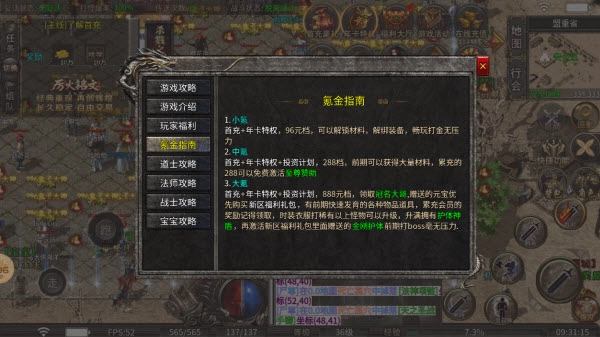 3、大氪:首充+年卡特权+投资计划,888元档,领取冠名大哥,赠送的元宝优先购买新区福利礼包,有前期快速发育的各种物品道具,累充会员的奖励记得领取,时装衣服打稀有以上怪物可以升级,升满拥有护体神盾,再激活新区福利礼包里面赠送的金刚护体前期打boss毫无压力。