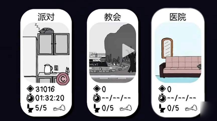 要进入隐藏房间,首先得找到三把隐藏钥匙,它们分别藏在派对、教会和医院这三张地图里。