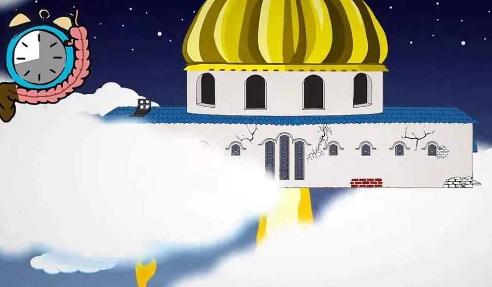 按下按钮后迅速返回并进入教堂,教堂升空后飞往月球,在月球上能找到第二把钥匙。