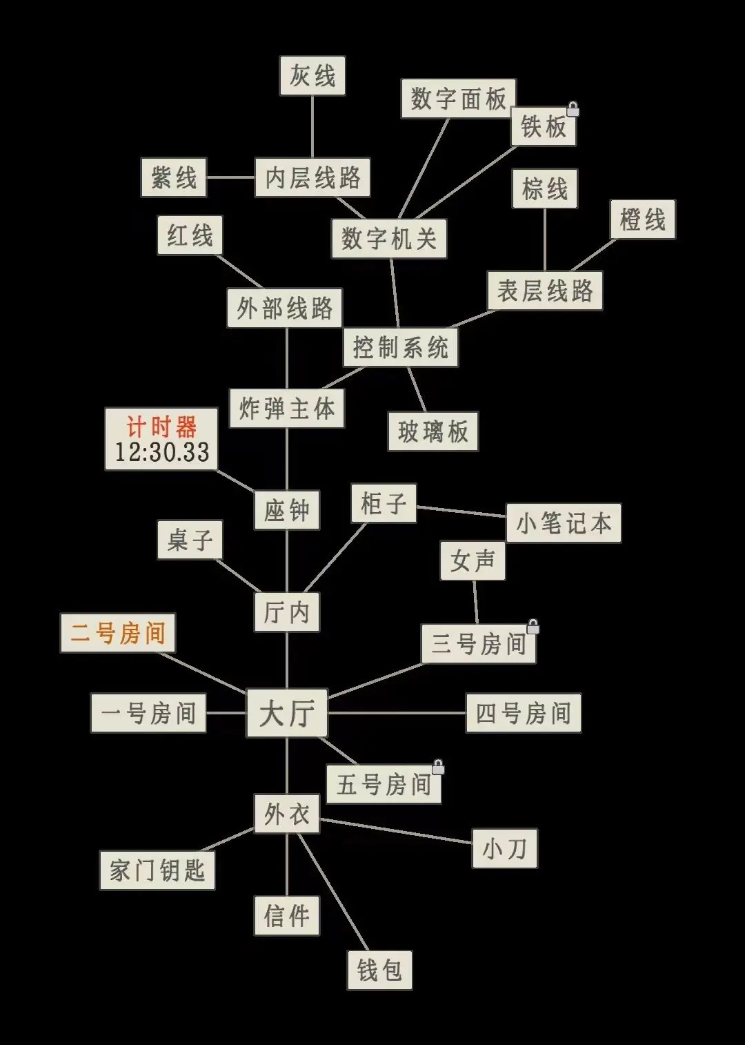 4、把得到的四种道具放入机关盒