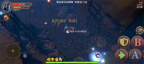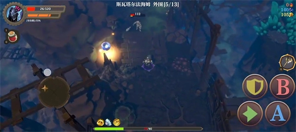 1、进入地图后,左下角的摇杆按钮可操控角色移动,别忘了持续探索地牢。