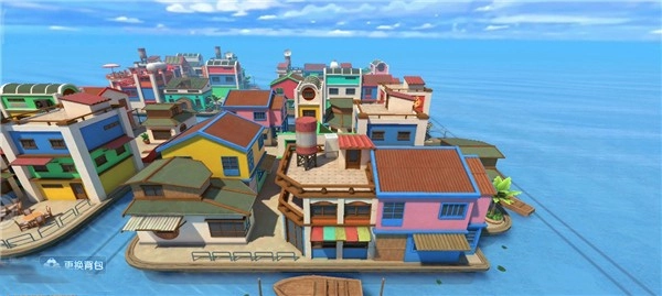 大家都清楚,小丑风格的地图往往以明亮的橘色为主色调,因此中间四栋大房子的主要色彩设定为橘色,房子之间形成一个十字路口,大地图的两侧则是两条宽敞的街道。几棵椰树与一辆小车作为点缀,显得十分得体。