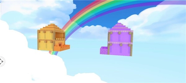 这张图里是空中对峙的两座城堡,分属敌我阵营遥遥相望;城堡各有两层,阳台外围都是石砌的围墙,建筑风格十分简约。
