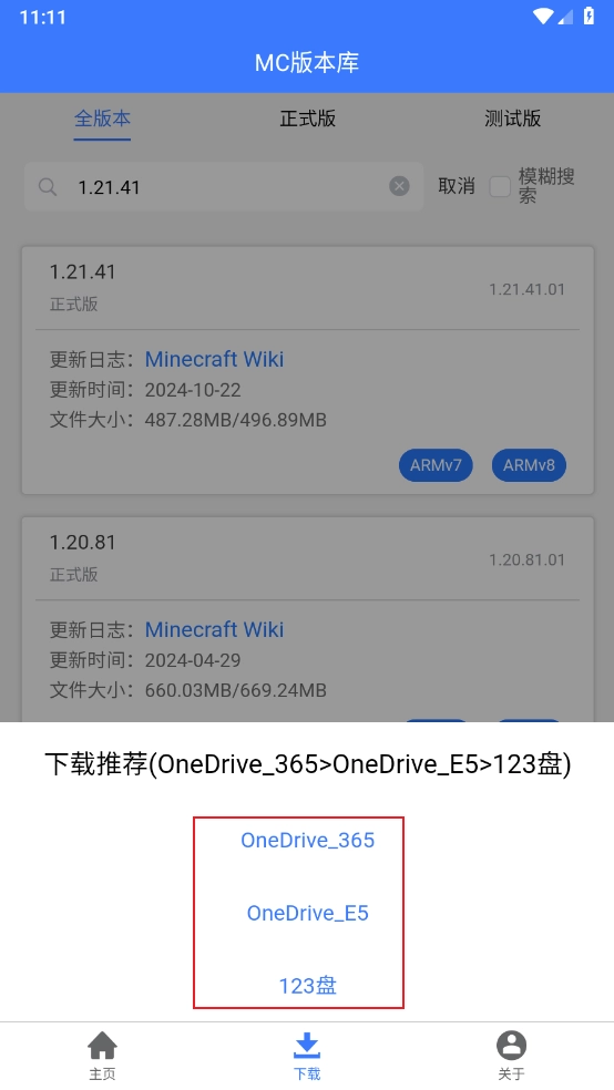 3、这里为玩家准备了丰富多样的游戏版本选择,不管是正式版、快照版,还是旧版本,都可以在这里找到。