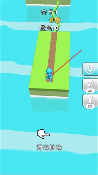 进入关卡界面后,按照提示滑动屏幕来操控角色沿着路径移动前进,目前的最高记录是0,需要持续移动才能推动游戏进程。