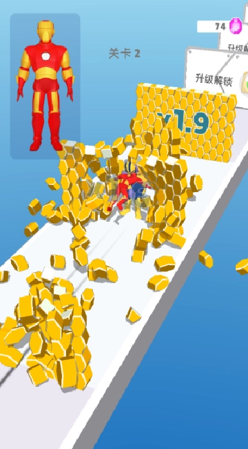 3、在屏幕上左右滑动,收集当前关卡所用英雄的碎片,要在抵达终点之前完成变身。