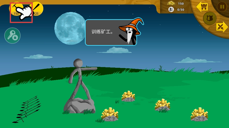 3、对矿工开展训练,同时进行资源积累,以此为后续的战斗行动以及建筑升级工作做好前期准备。