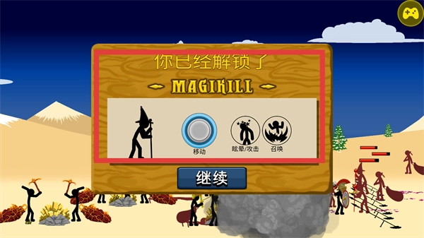 4、解锁【MAGIHILL】单位,了解它的【移动】【发起攻击】等操作,点击【继续】来熟悉这个新单位的使用方法。