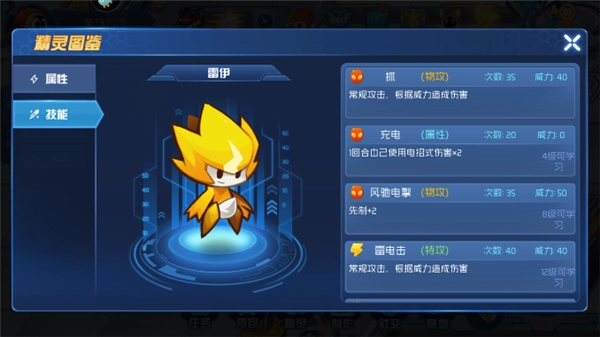 1、雷伊:雷系精灵中的强者,种族值达到顶级的612点,是玩家早期就能接触到的神兽级精灵之一。