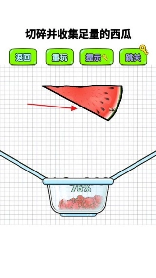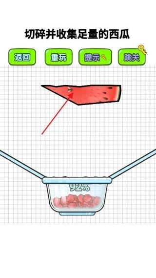 1、进入关卡后,首先要观察西瓜上被污染食材的形状、虫子的分布情况以及它们的移动状态,从而确定需要切割的完好区域范围。