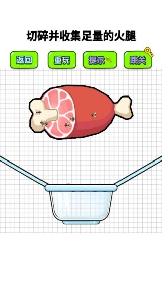 1、精准切割食材时,通过手绘闭合切割线来分离完好部分与污染区域,避开虫子以确保食材不报废,从而完成关卡目标。
