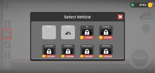 4、如下图,可以为角色选择一个载具;