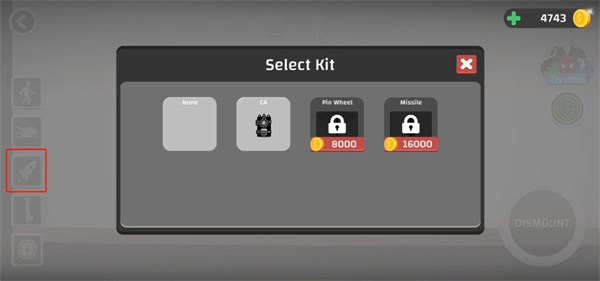 6、装备准备好后,点击右下角的DISMOUNT按钮即可开始闯关;