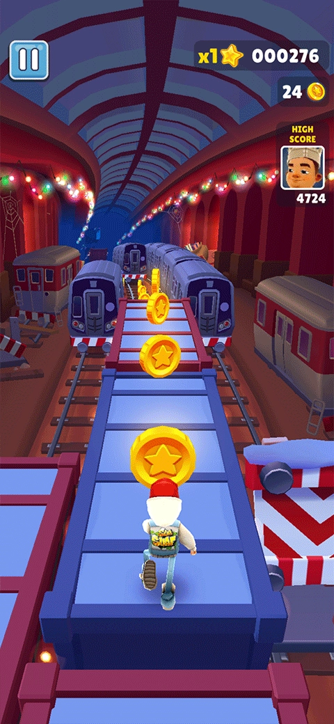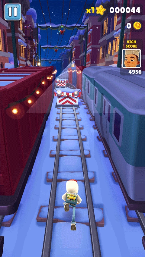 2、跳跃的距离并非固定不变。遇到上坡路段时,跳跃距离会显著缩短;而在下坡路段,跳跃距离则会明显变长。因此,在这些路段躲避障碍物时,务必把控好起跳的距离。(PS:地铁跑酷的场景大多在平地或火车上,但部分路段也存在起伏)