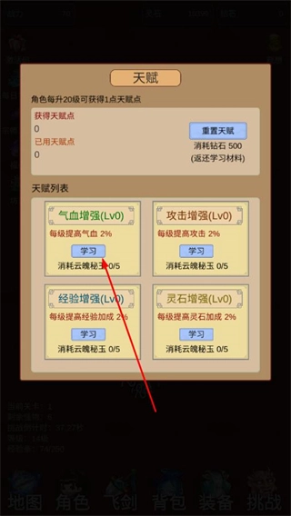 3、支持直接调整飞剑等级与天赋等级,玩家既可以选择“速通流”——将资源全部投入让飞剑拥有秒杀怪物的能力,也能选择“慢养流”——只补充紧缺资源,保留挂机养成的乐趣。