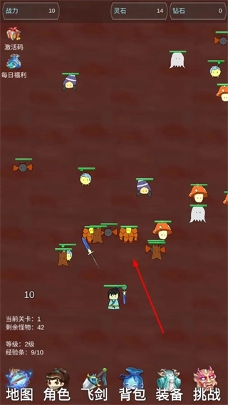 1、进入游戏主界面后,飞剑会自动对场景内的怪物发起攻击,成功击败怪物即可获取灵石与经验。
