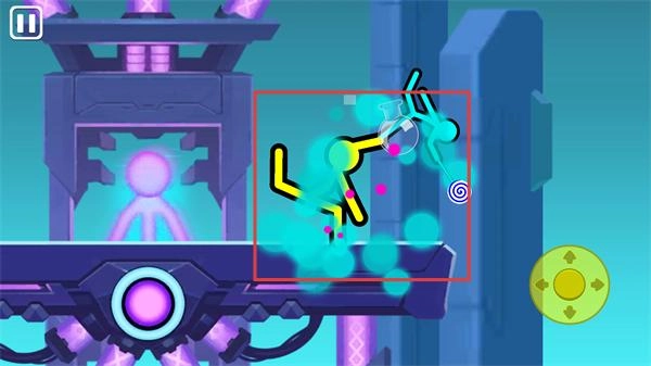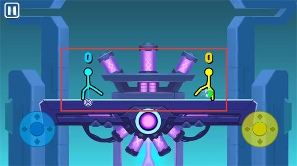 3、借助场景里的机关(比如紫色装置),避开敌方黄色火柴人的攻击,同时抓住合适的时机展开进攻。
