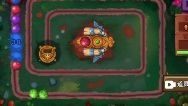 1、通过滑动操作控制弹射器,朝着持续前进的球链发射彩色小球,当三个或三个以上相同颜色的小球相连时就能消除。