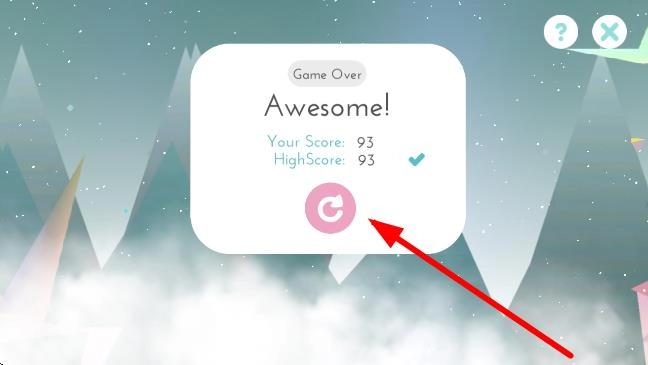 3、要是出现了界面,就点击粉色的重玩按钮,重新开启游戏,调整一下策略,努力获取更高的分数。