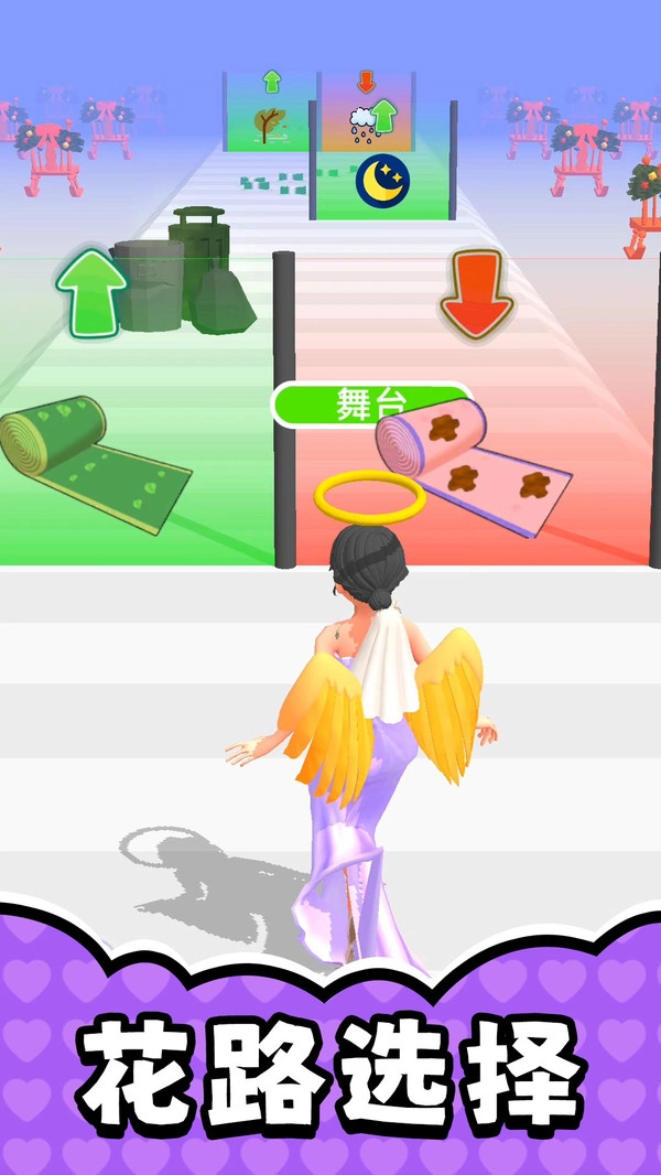2. 路线选择判断:每条跑道对应不同风格的路线,选择哪一侧奔跑将决定最终的造型效果,这考验着玩家的判断力与观察力。