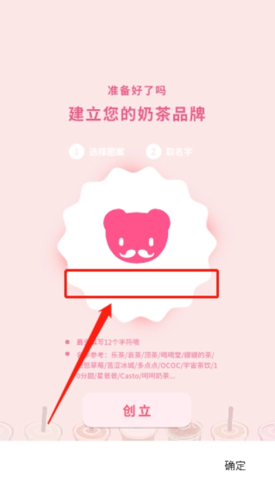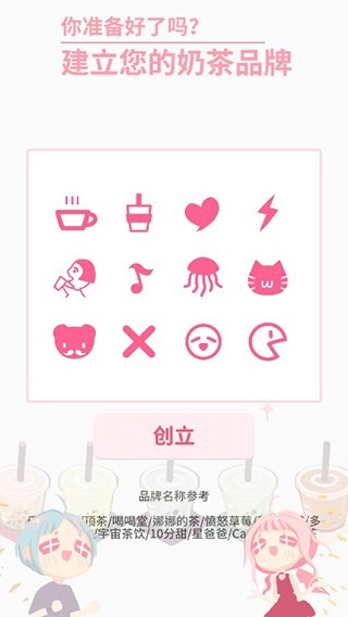 3、玩家需挑选心仪的奶茶品牌logo与品牌名称,点击“创立”按钮即可筹备开业事宜。
