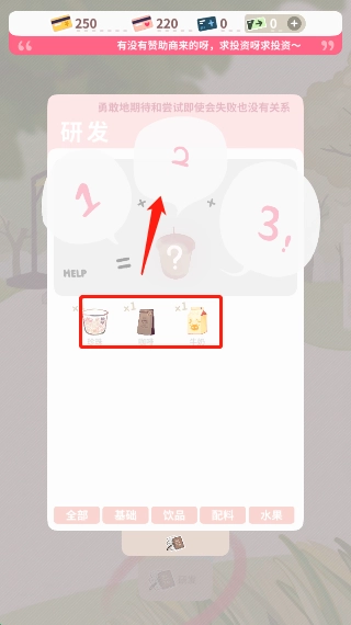 5、把收集好的原材料放进研发区域,就能开展新品奶茶的调配实验了。