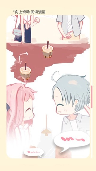 1、启动从本站安装完成的恋恋奶茶小铺游戏后,你可以滑动屏幕来阅读游戏的故事漫画,从而了解相关的背景剧情。
