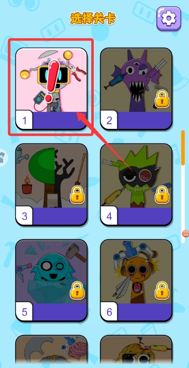 1、启动游戏后,进入模式玩法选择界面,挑选已解锁的第一关开始挑战。