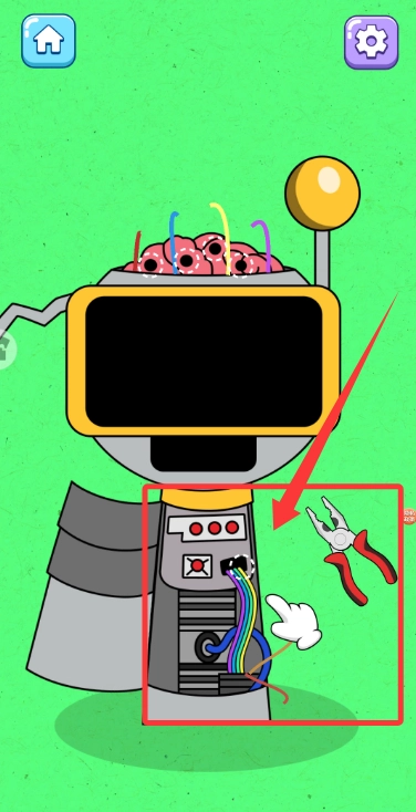 3、按要求需使用上方的工具钳子,对机器人身上的彩色线路等部位进行操作,以完成化妆步骤。