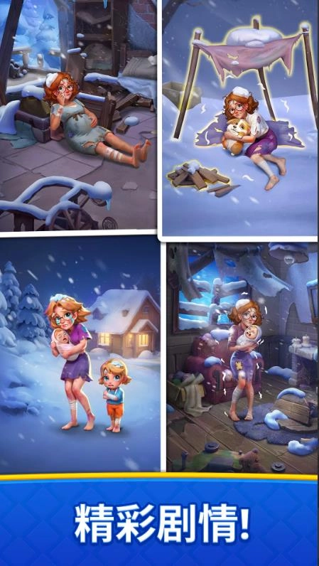 1、结合剧情探索与3D三消玩法,重建遭受破坏的小镇。
