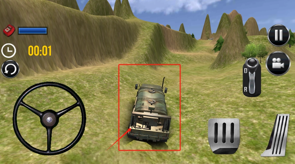 3、用左下角方向盘控制越野车,右下角踏板加速。