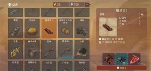 1、第一步需要制作一个诱饵工作台,而召唤宠物所用的诱饵,通常是你在博士营地接到的饵料配方,像召唤狼这类宠物的配方,具体用哪种取决于你当时的选择。