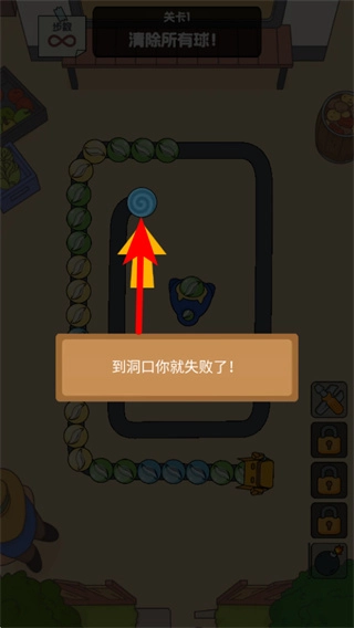4、不断消除轨道上的球直至轨道清空,同时留意洞口出现的道具,当达成清除所有球的关卡目标后,就能顺利进入下一关。