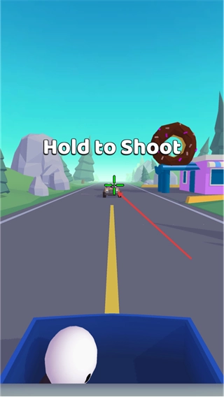 2、进入游戏后,按照提示“HoldtoShoot”的指引,按住操作区域即可触发射击,瞄准前方的敌方车辆等目标发起攻击,以此推动战斗向前进展。