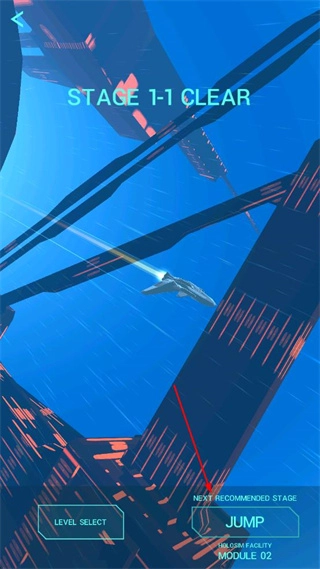 4、点击界面上的JUMP按钮,就能进入下一个推荐关卡,接着操控飞行器开展飞行挑战。