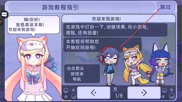 打开游戏进入教程指引页面后,派泰斯本会向你表示欢迎,本教程将助力你开启这段游戏旅程,点击箭头按钮就能进行导航操作。