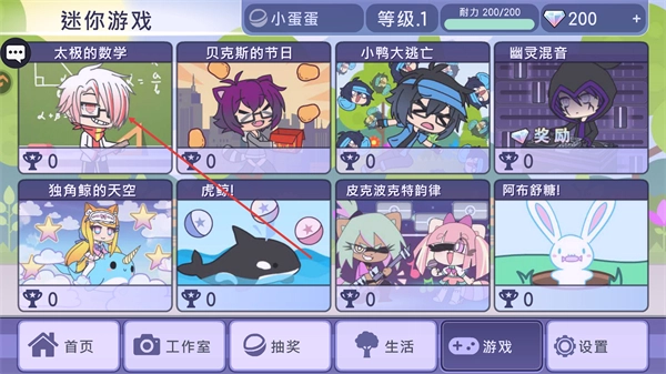 3、迷你游戏页面汇集了太极的数学、贝克的节日、小鹅大逃亡等多款小游戏,你可以挑选感兴趣的体验游玩,完成游戏后还能领取对应的奖励。