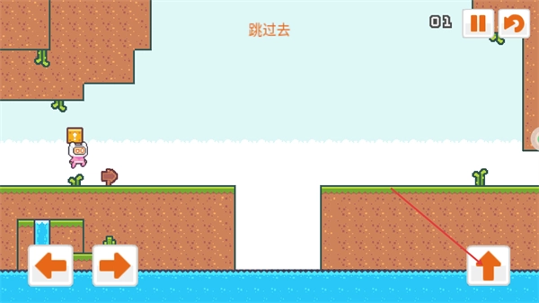 当前关卡界面会出现“跳过去”的提示,这时候需要点击界面下方右侧的向右箭头按钮,通过这个按钮来操控角色向右移动,让角色逐渐靠近需要进行跳跃的区域。