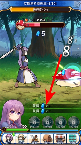 3、战胜怪物后能得到宝石奖励,积攒这些资源可以用于后续的养成环节。