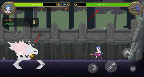 3、完成怪物击败任务后,注意查看界面显示的任务成功反馈信息,接着继续推进后续的关卡内容。
