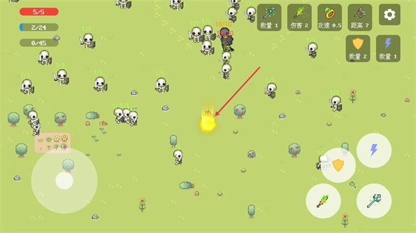 3、当游戏里遇到骷髅类敌人单位时,点击右侧的技能按钮;使用技能后会进入技能冷却状态,等冷却结束就能释放相应技能来增强战斗效果。