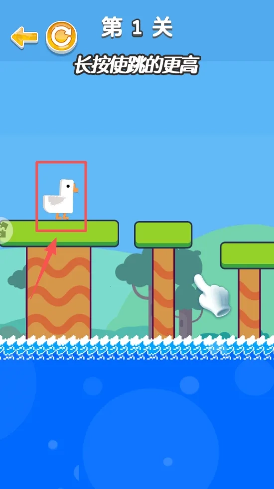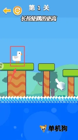 4、长按屏幕可让角色跳得更高,灵活避开障碍,从而顺利闯过第一关。