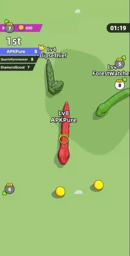 2. 开启丛林法则下的生存征程,捕食弱小的蛇类来增强自身实力,在蛇群遍布的战场上灵活游走。
