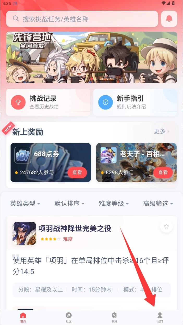 2、可以在任务大厅浏览各类挑战,借助筛选功能快速定位到感兴趣的内容。
