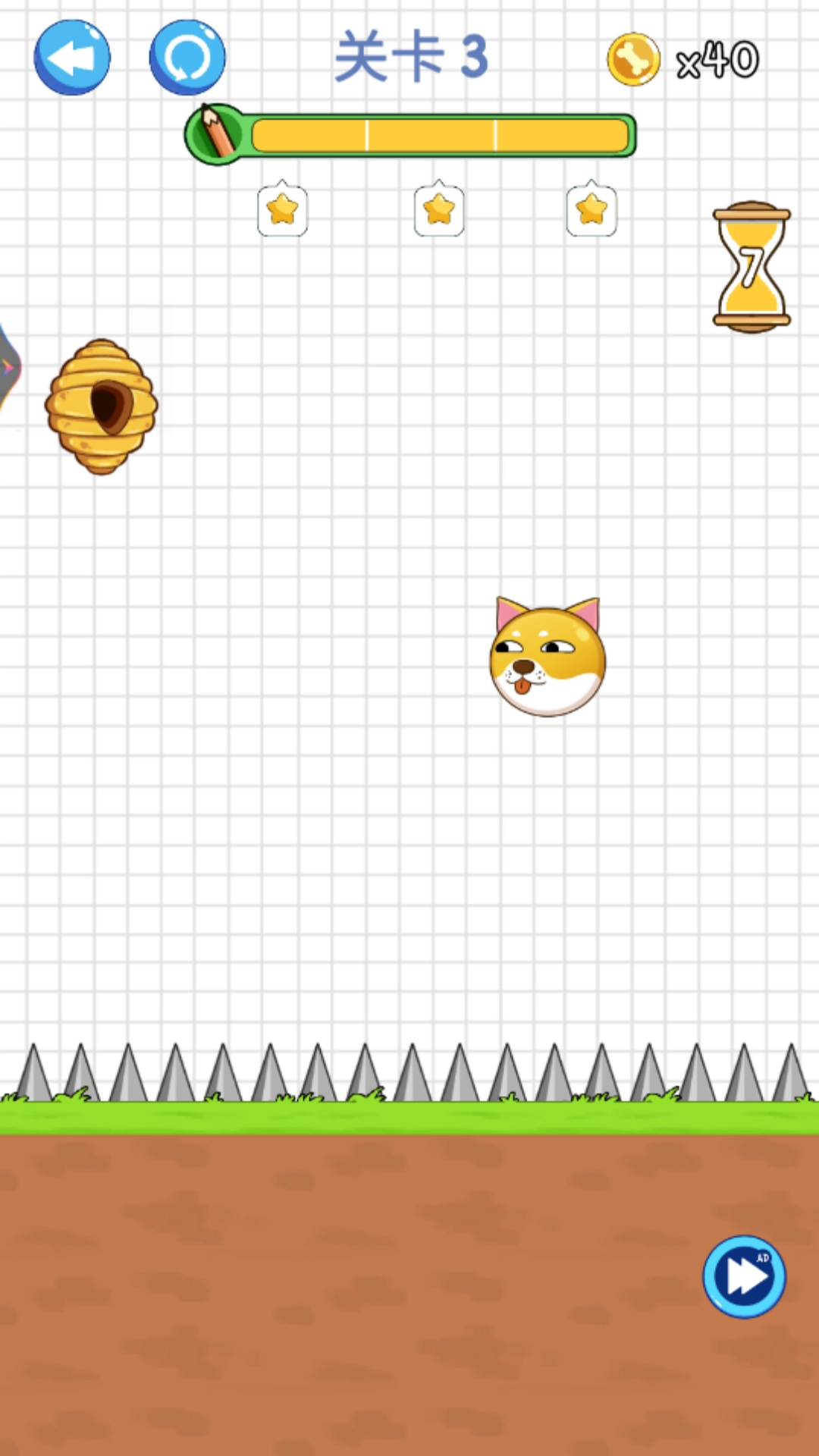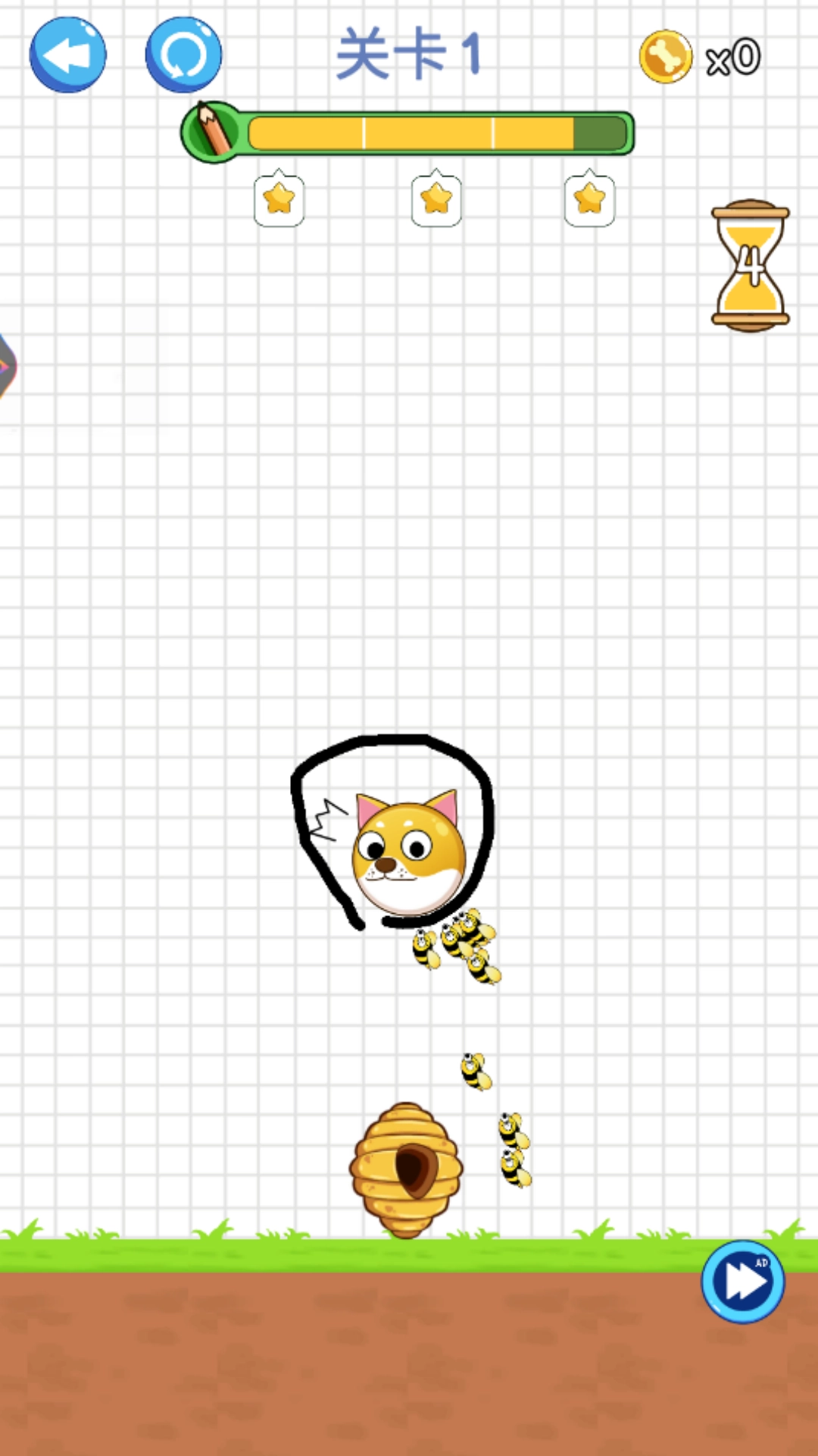 1. 用手指在屏幕上滑动来画出防线,守护中间的狗头,防止它被蜜蜂蜇伤。