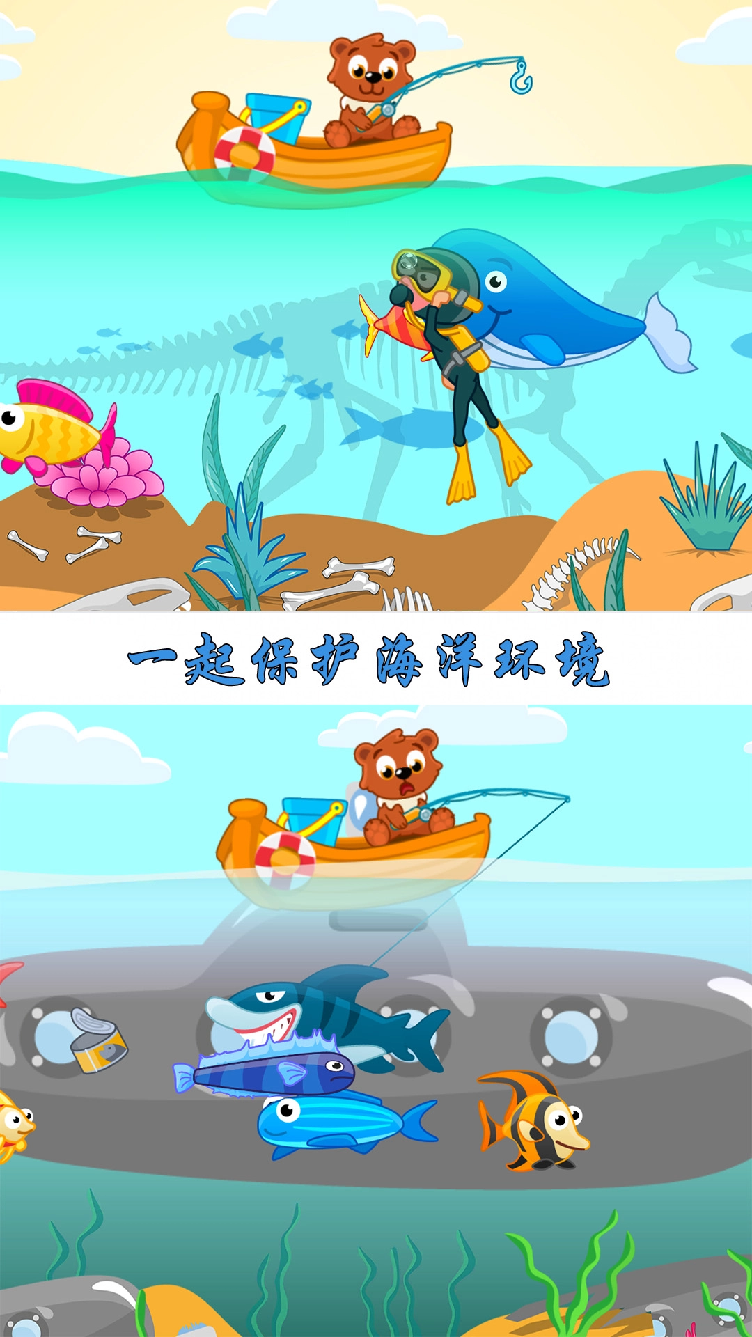 2、拥有丰富多彩的鱼类图鉴,每一种鱼都具备独特的外形与故事,能够激发宝宝们的探索欲望。