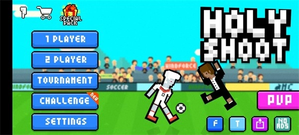 逗比足球(Holy Shoot)是一款趣味十足的休闲益智游戏,采用魔性搞笑的像素画风,搭配可爱的角色选择,玩家能开启全新的点击对抗玩法——通过踢足球完成各类挑战。游戏操作简单,仅设一个跳跃踢球按钮,点击即可跳跃并将球踢入对手球门得分;不过由于没有方向键,行动并不便捷,操作时人物会以怪异姿势踢球,画面十分滑稽,让人忍俊不禁。此外还有多样的在线竞技体验等待玩家探索,过程极具可玩性。感兴趣的玩家千万别错过,随时都能开启畅玩之旅。