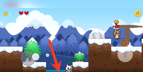 2、用单指点击屏幕就能操控熊大跳跃(点击时长会影响跳跃高度),碰到特殊地形时,还能借助二段跳或冲刺技能来越过障碍。